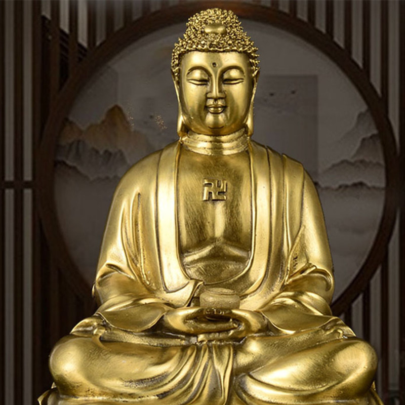 圆通佛具阿弥陀佛像台湾纯铜阿弥陀佛佛像三宝佛如来佛像供佛摆件
