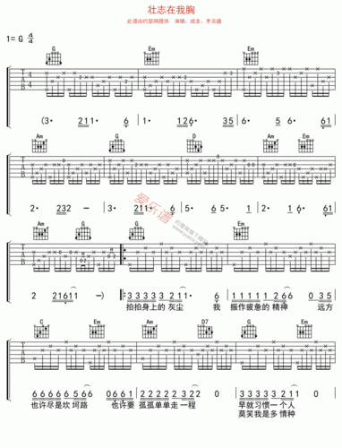 壮志在我胸吉他谱-成龙,李宗盛高清六线谱图片谱
