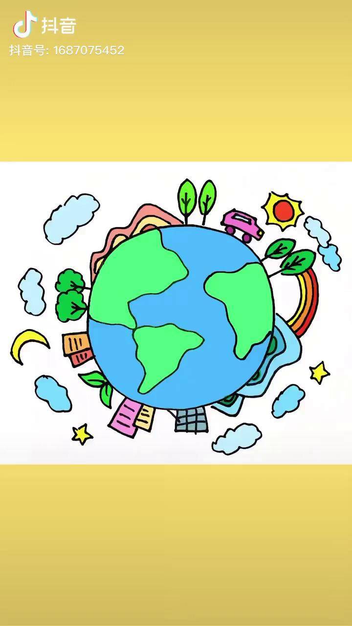 简笔画 #画画 #马克笔手绘 #绿色环保儿童画 #保护地球 #马克