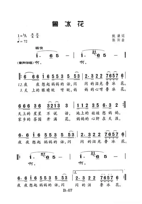 儿歌简谱鲁冰花