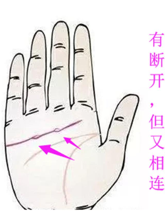 感情线断裂一上一下图,感情线断裂交接重叠图解