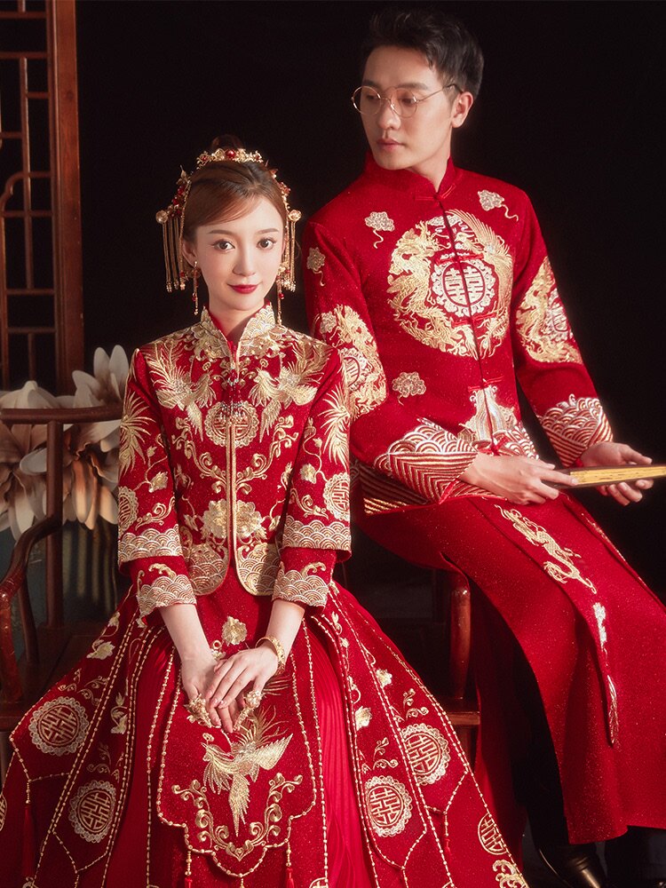 情侣秀禾2021新款新娘新郎结婚婚纱礼服中式嫁衣旗袍