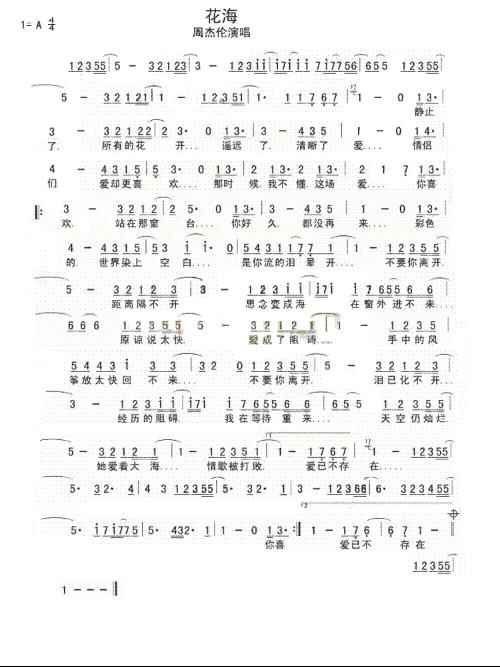 周杰伦《花海》简谱