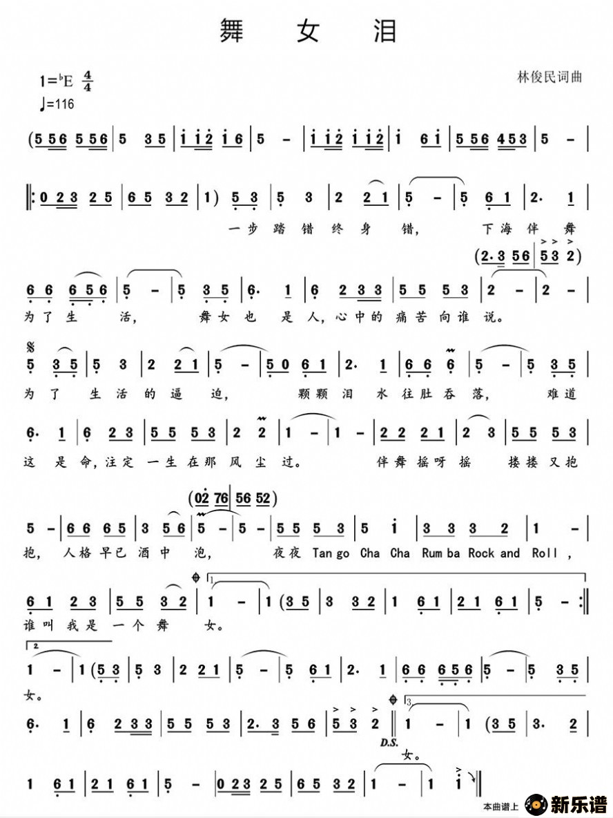 歌曲舞女泪的简谱歌谱下载