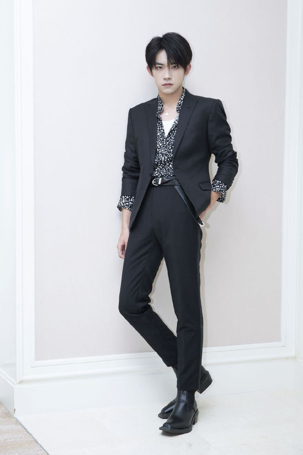 李现同框易烊千玺,同样搭配黑色亮片西装,豹纹衬衫太抢镜!