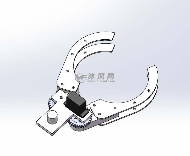 机器人手爪轴测图机器人手爪,机械手是由丙烯酸制成的,中部用齿轮连接