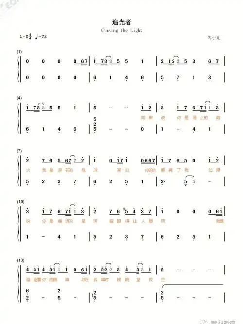 追光者 钢琴谱 双手简谱 电子版 独奏 岑宁儿 c/d/e/f/g/a/b调