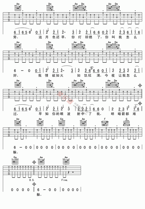 大眼睛吉他谱六线谱简谱刀郎