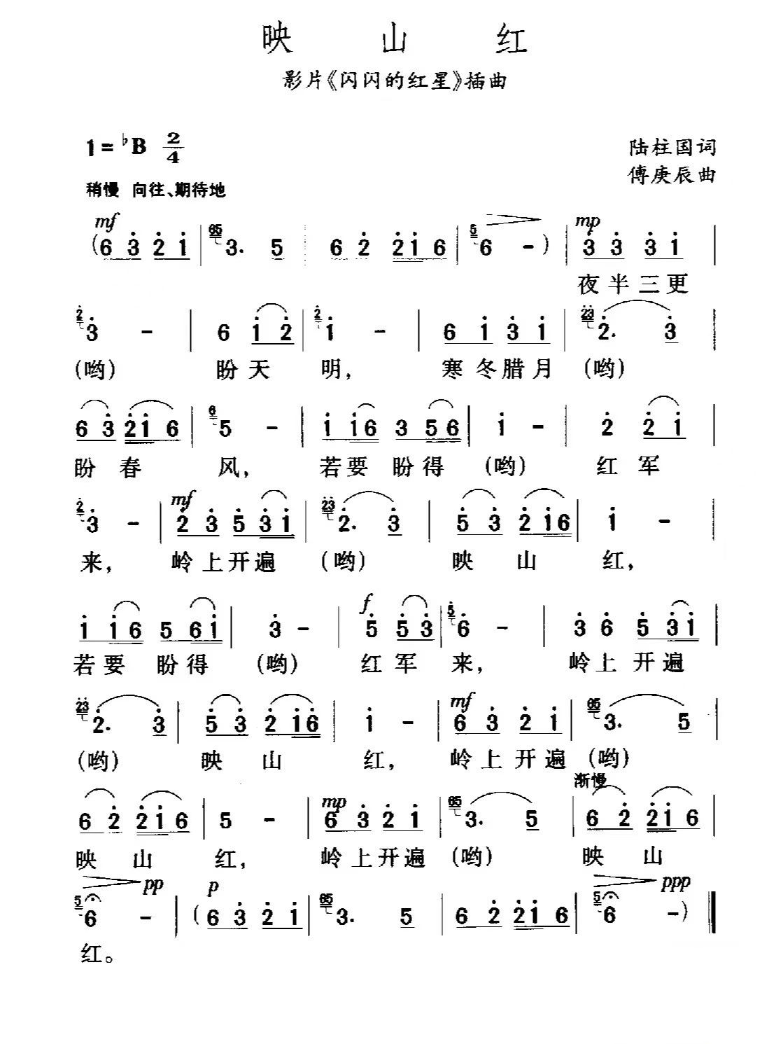 映山红简谱-童丽演唱-陆柱国/傅庚辰词曲1
