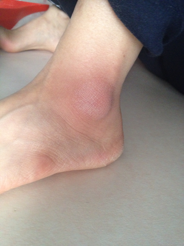 脚扭伤了,都肿成这样了.路都不好走.