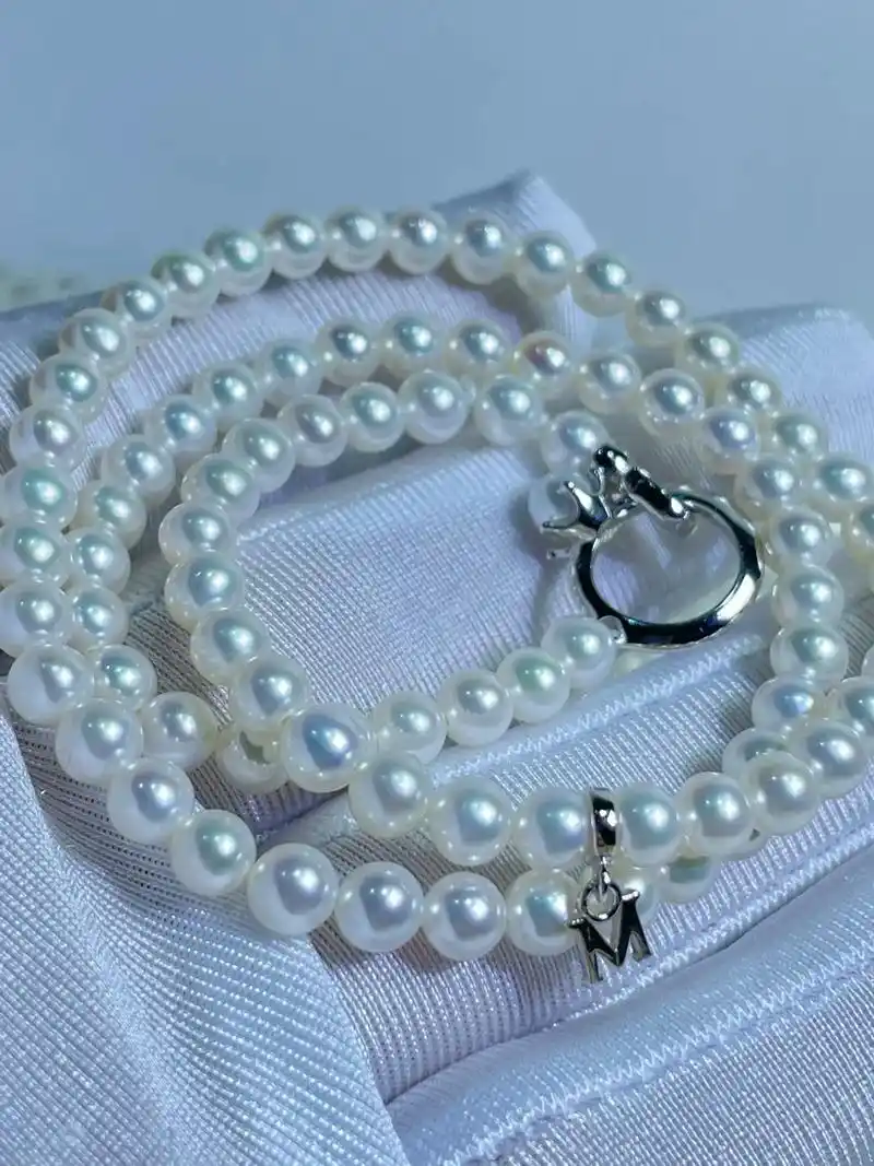 小珍珠项链多层三层天然淡水 强光近无瑕蝴蝶结扣短款锁骨链颈链