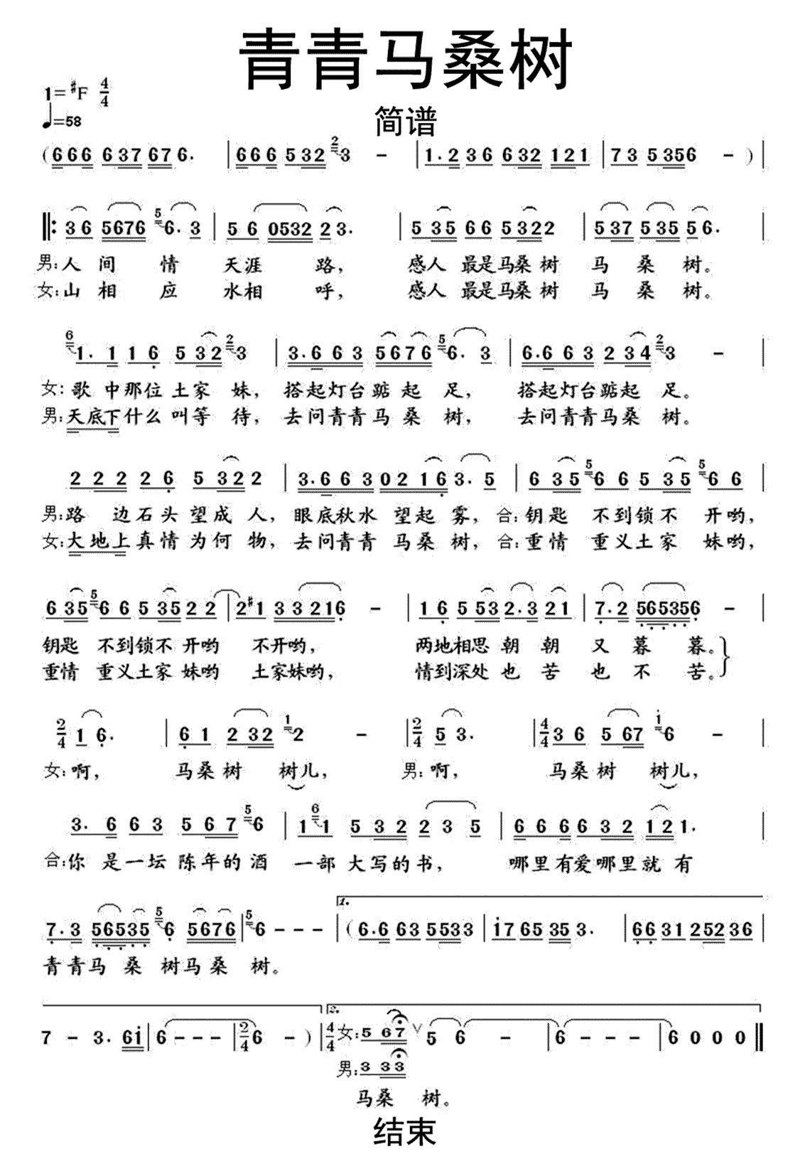 青青马桑树歌词简谱