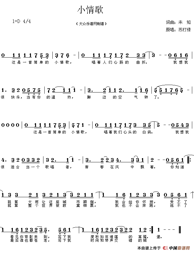 小情歌简谱