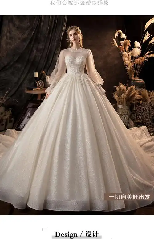 长袖婚纱2020新款新娘气质拖尾小个子孕妇森系超仙梦幻遮孕肚冬季