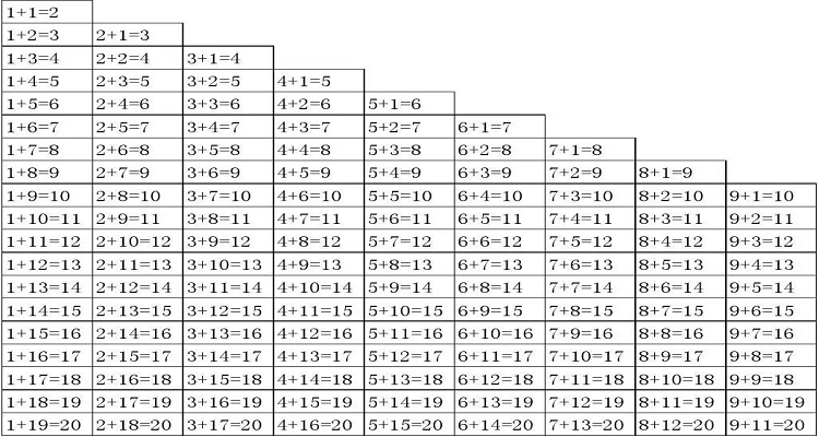 《20以内进位加法退位减法表》一年级数学重点 7615 一年级数学
