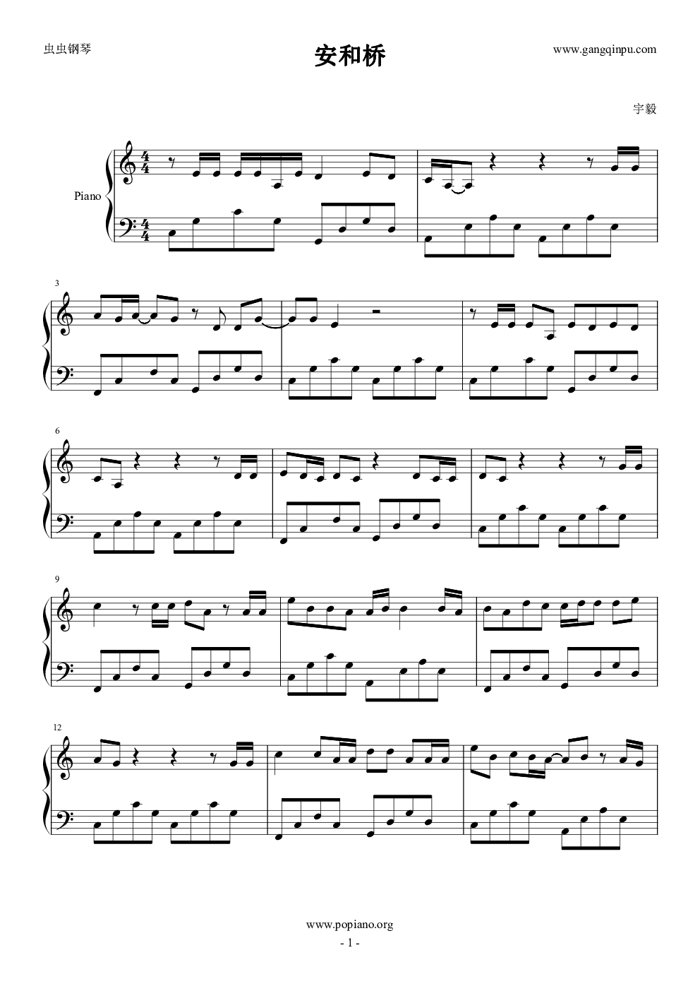 安和桥钢琴谱-c调-虫虫钢琴