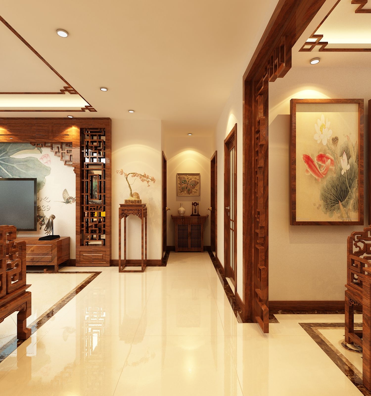 中式风格三室两厅两卫装修设计效果图 家装案例