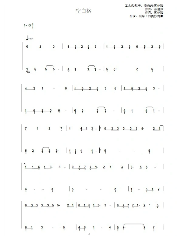 《空白格》_歌谱简谱_歌词简介_曲谱资料