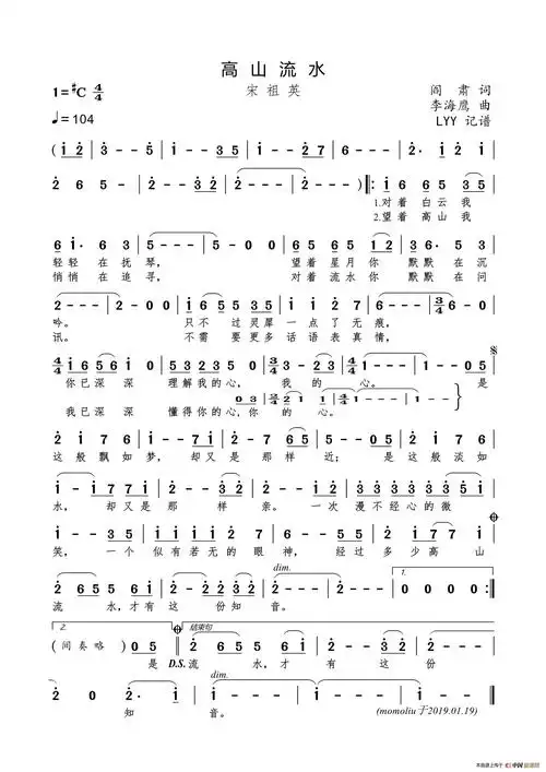 高山流水(阎肃词 李海鹰曲)_简谱