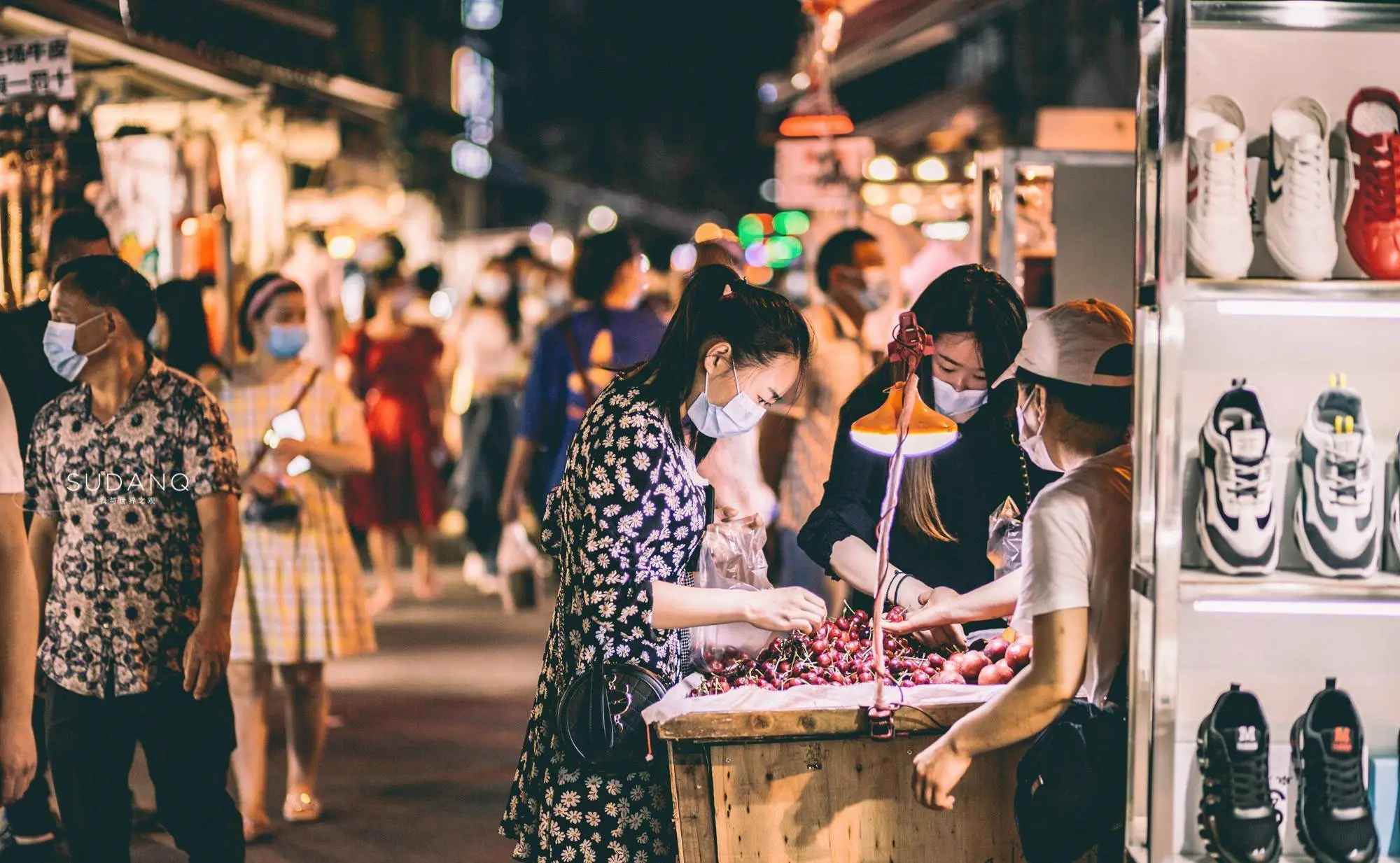 夏日的夜晚,城市的夜市和小摊摆满了各式美食和商品,吸引着大量市民前