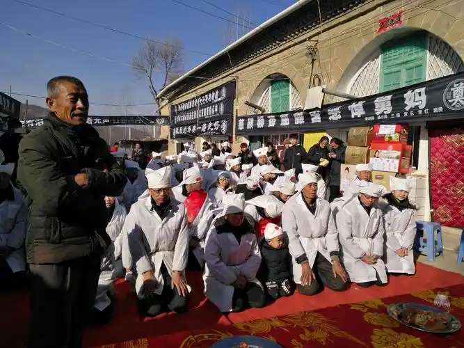葬礼上儿子儿媳哭丧的场面