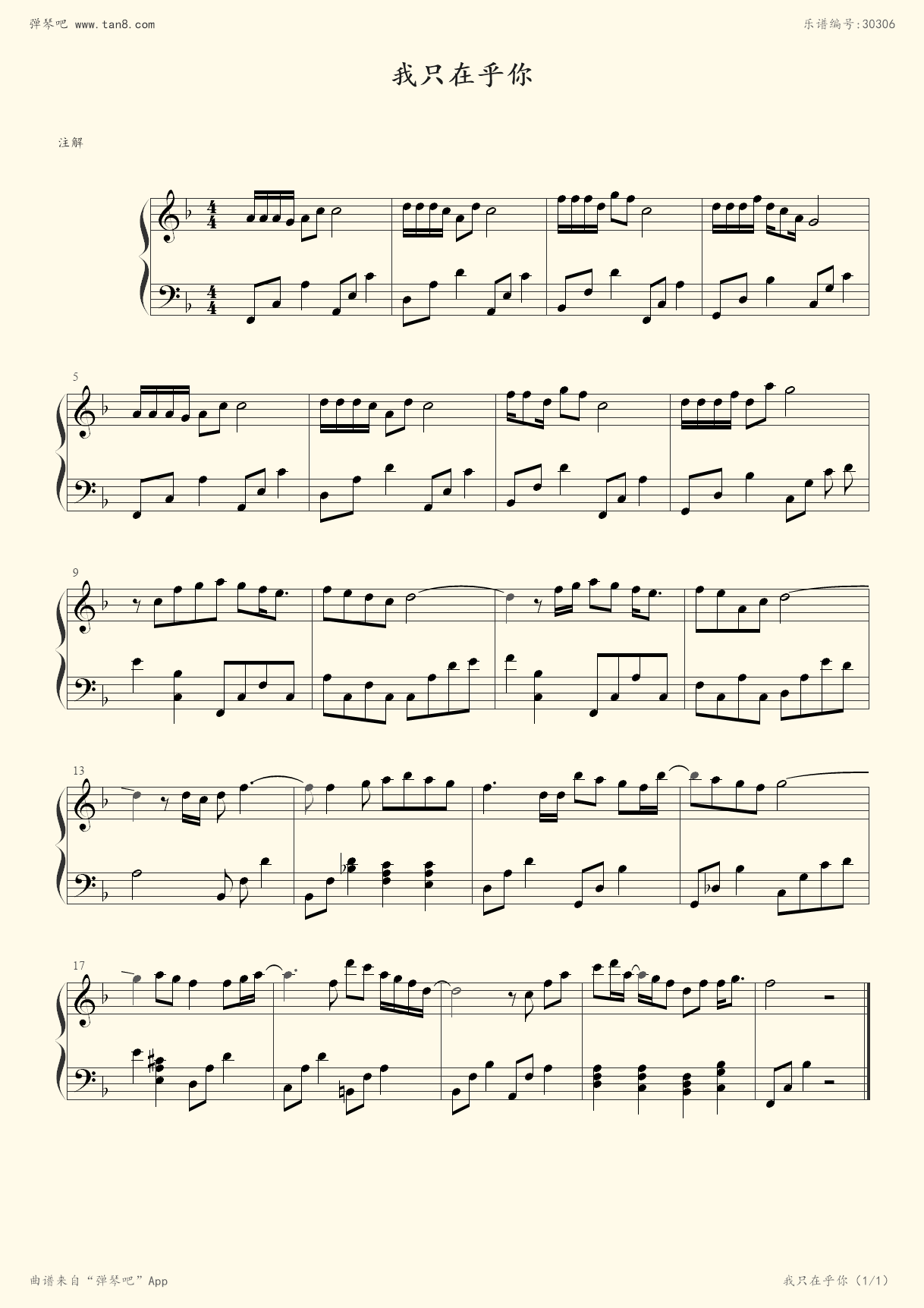 钢琴谱:我只在乎你