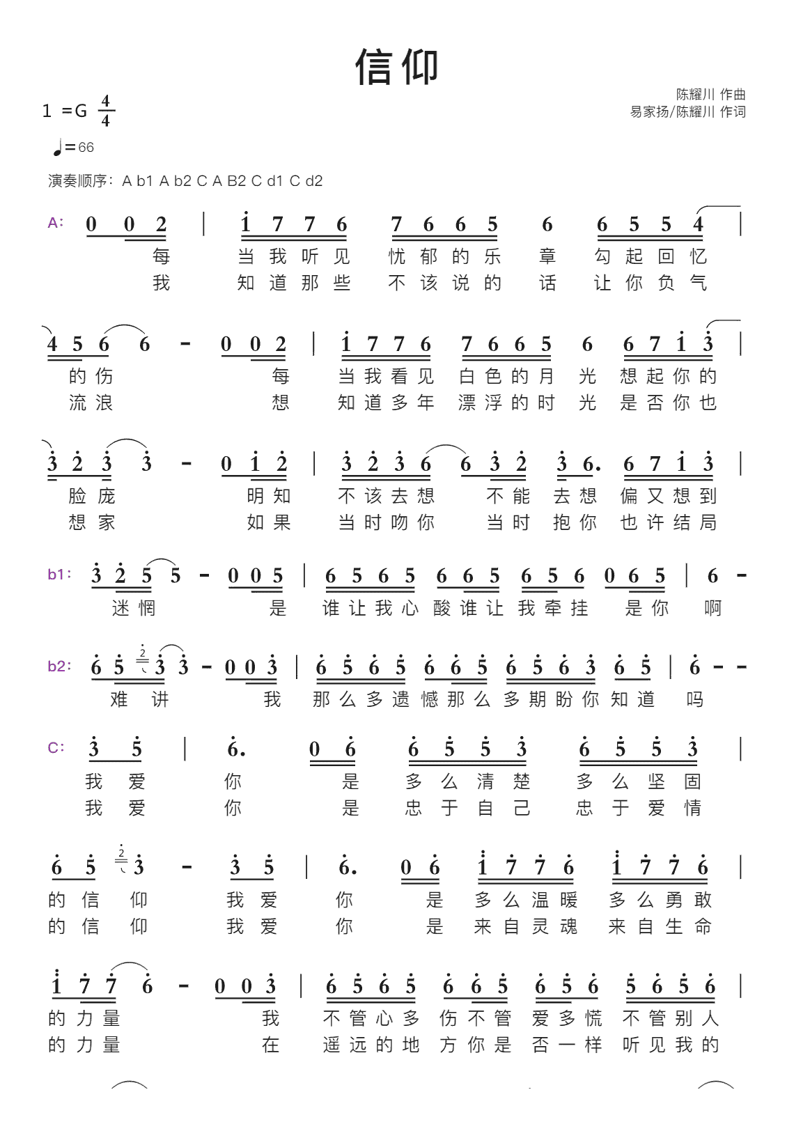 信仰简谱(歌词)-韩磊演唱-秋叶起舞记谱1