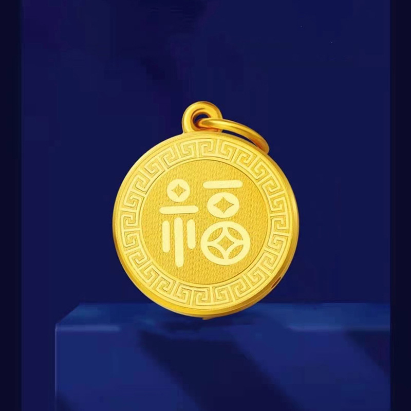 越南沙金福字牌吊坠黄铜镀金福牌金币吊坠时尚男女中国风挂坠项链