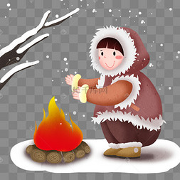 冬季火堆取暖人物卡通手绘免扣png