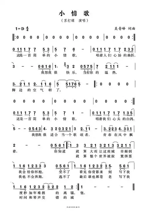 苏打绿《小情歌》简谱 这是一首简单的小情歌,唱着人们心肠的曲折