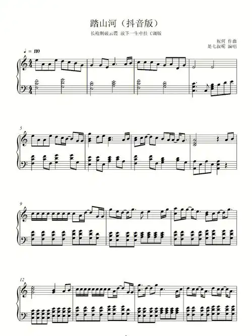 《踏山河》钢琴简谱 《踏山河》钢琴简谱