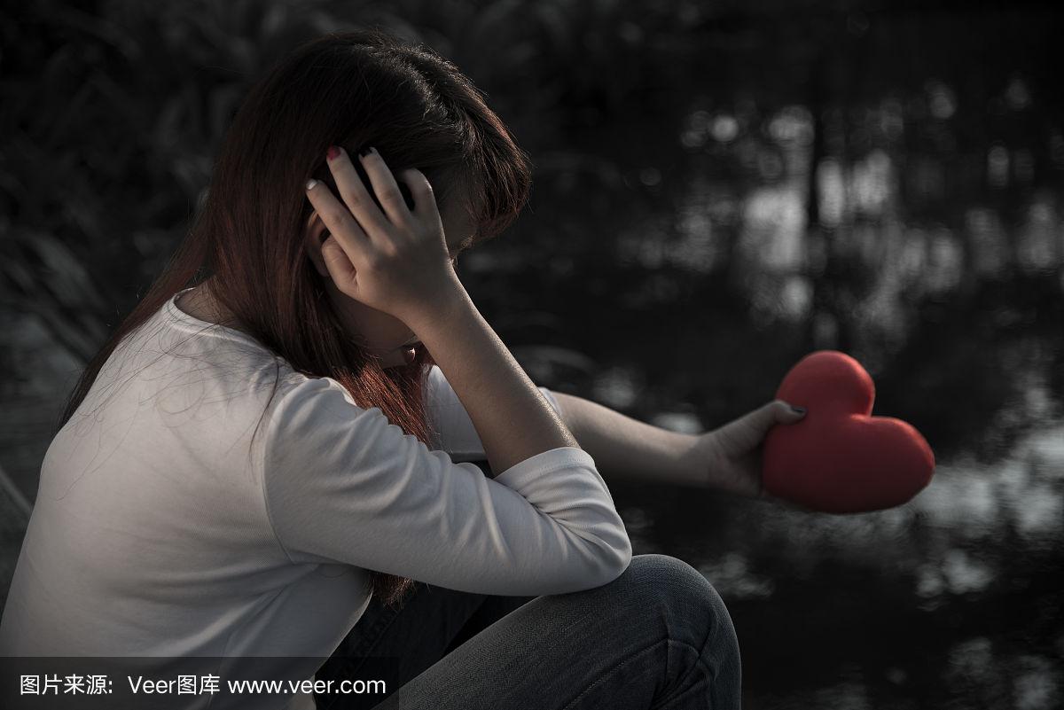 心碎的女人在河边为她失败的爱情伤心哭泣