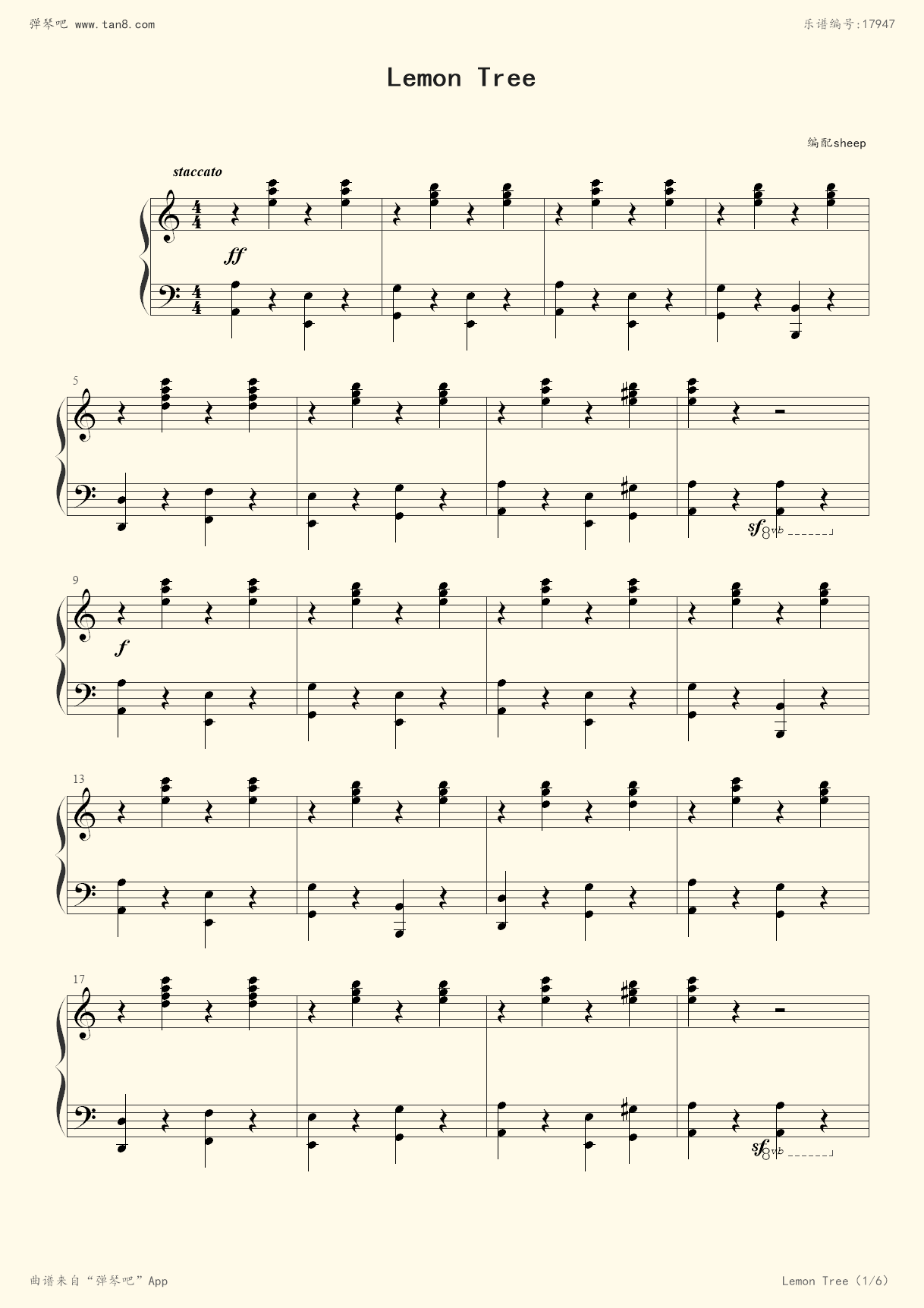 钢琴谱:lemon tree(柠檬树)