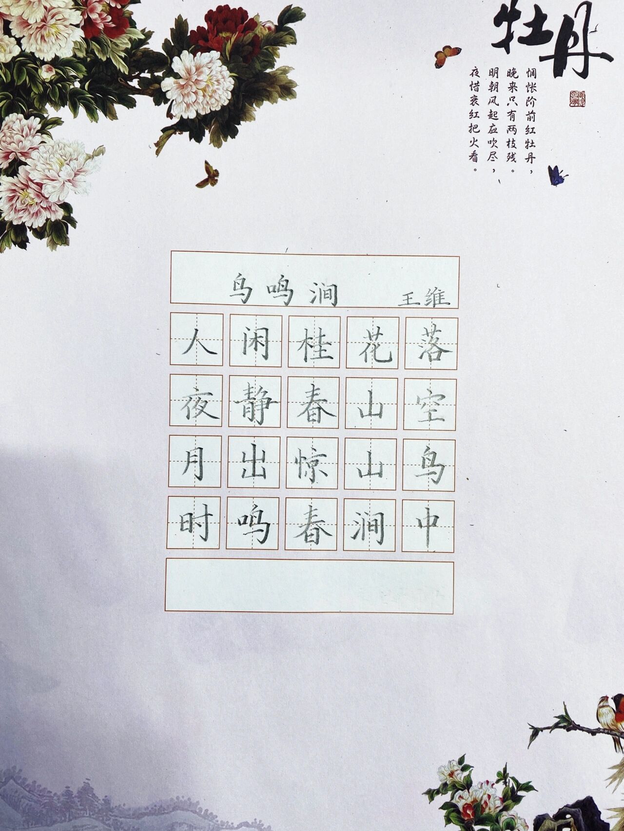 硬笔书法古诗作品楷书|鸟鸣涧·王维 鸟鸣涧 唐 · 王维 人闲桂花落