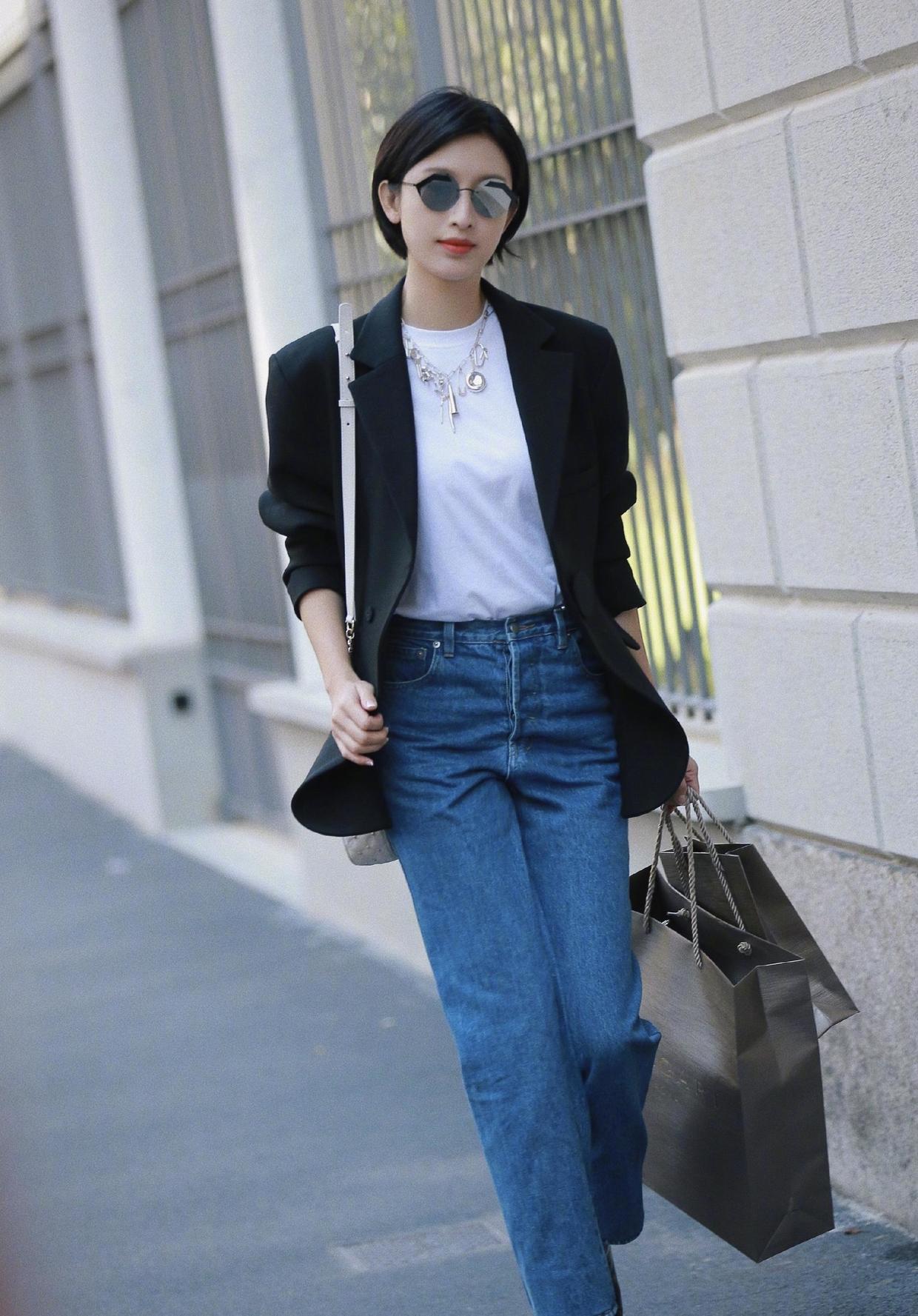 张俪利落登场,黑白背心复古牛仔裤引关注!_时尚_魅力_气质
