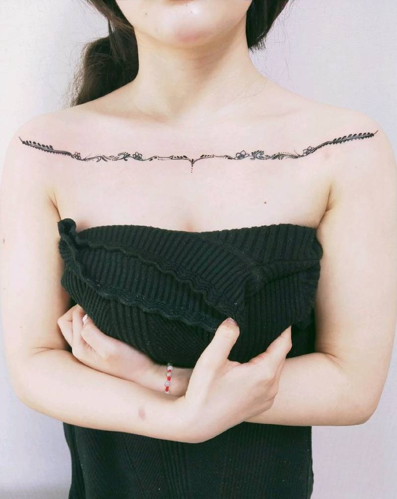 有没有锁骨到胸口上的纹身图案女孩子的之前有纹身想盖住要大点的好看