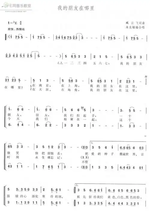 我的朋友在哪里 少儿合唱 少儿合 歌谱 简谱