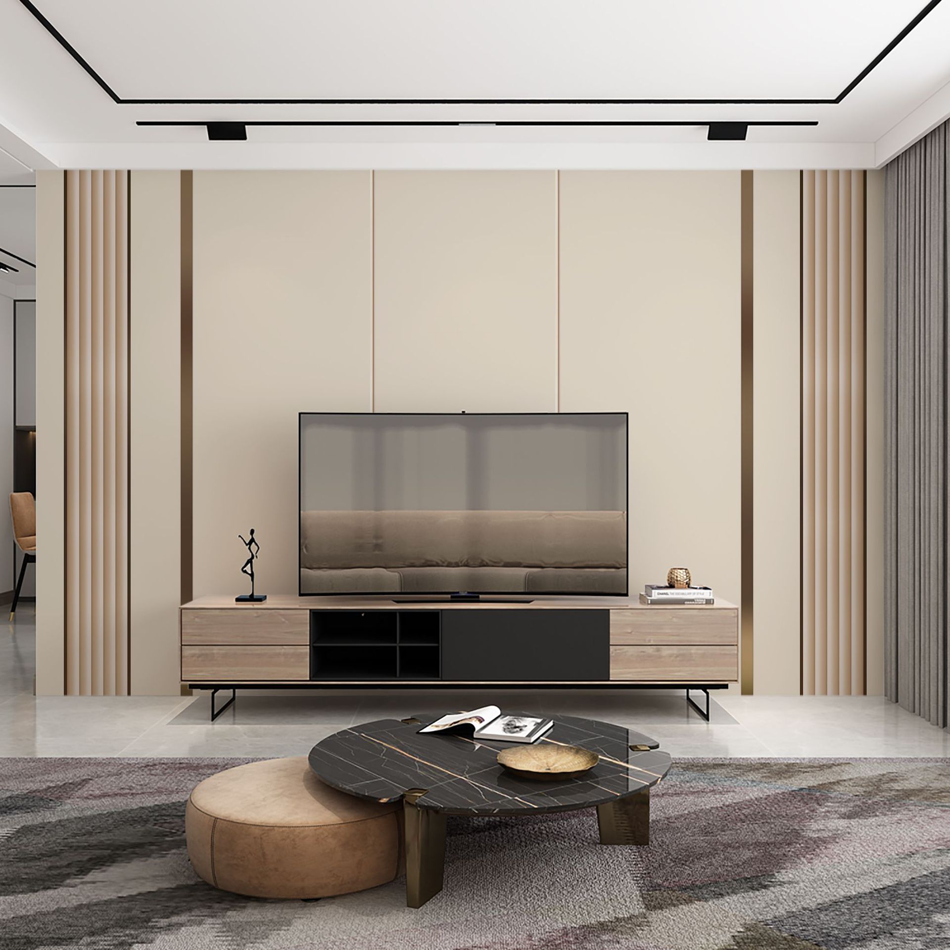 轻奢电视背景墙壁纸装饰客厅金属线条大理石