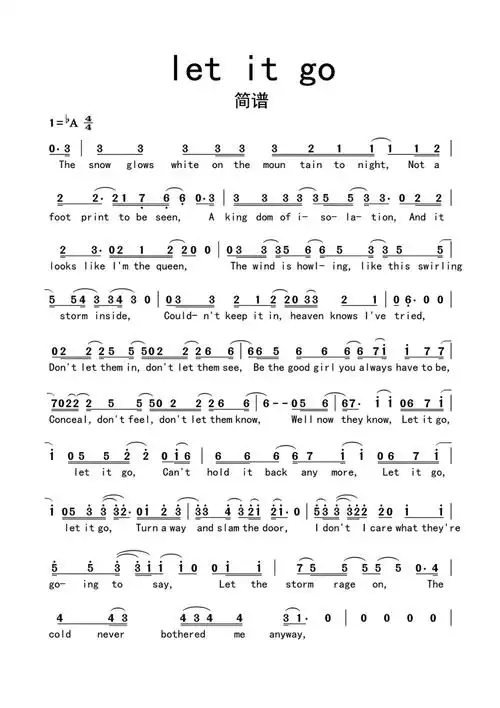 简谱letitgo简谱