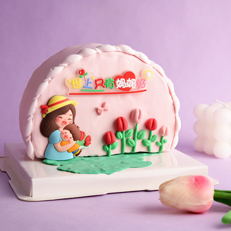 母亲节蛋糕装饰摆件世上只有妈妈好软胶郁金香插件派对甜品台装饰