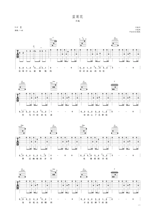 许巍蓝莲花原版吉他谱