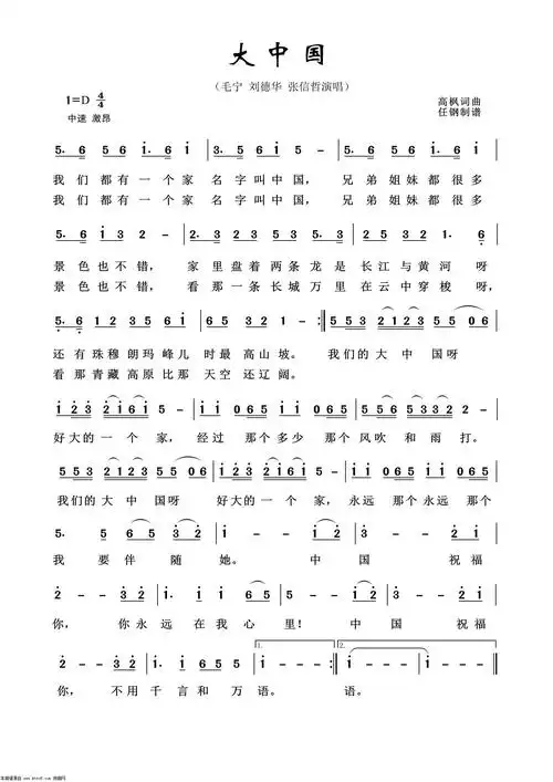 大中国 歌谱简谱网
