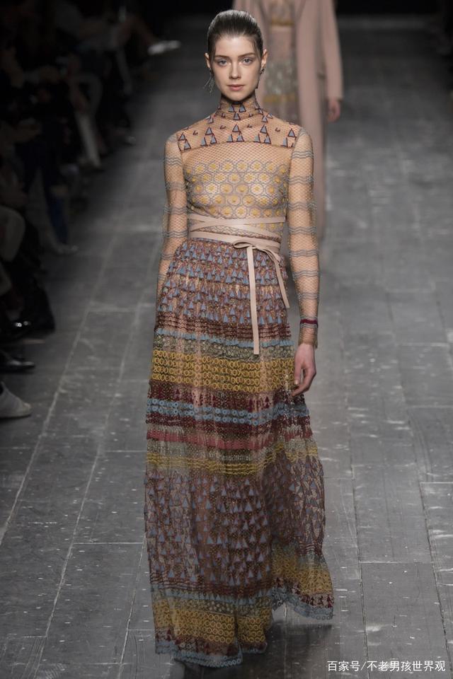 valentino绣有珠宝和水晶的裸色纱裙变幻多端,通透得娇而不媚