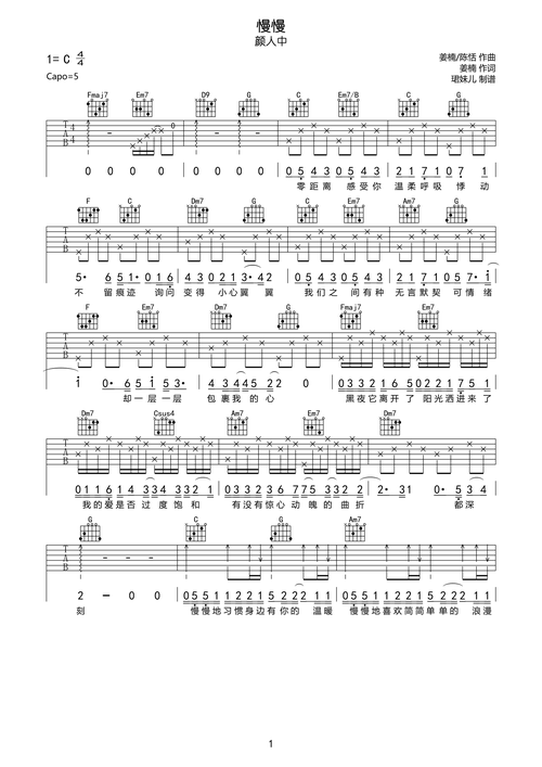 颜人中慢慢吉他谱