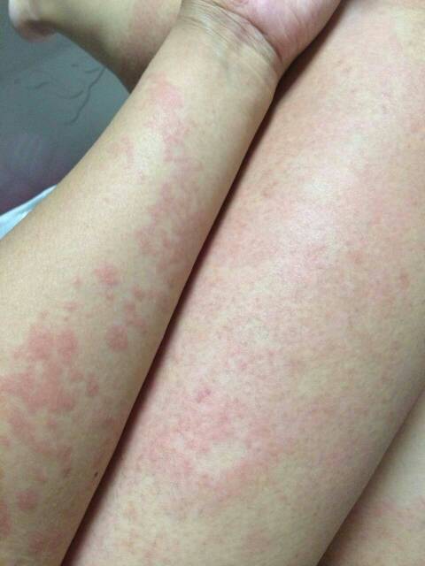 怀孕15周,身上突然起了一片一片的红疹,很痒,去医院检查只说过敏性