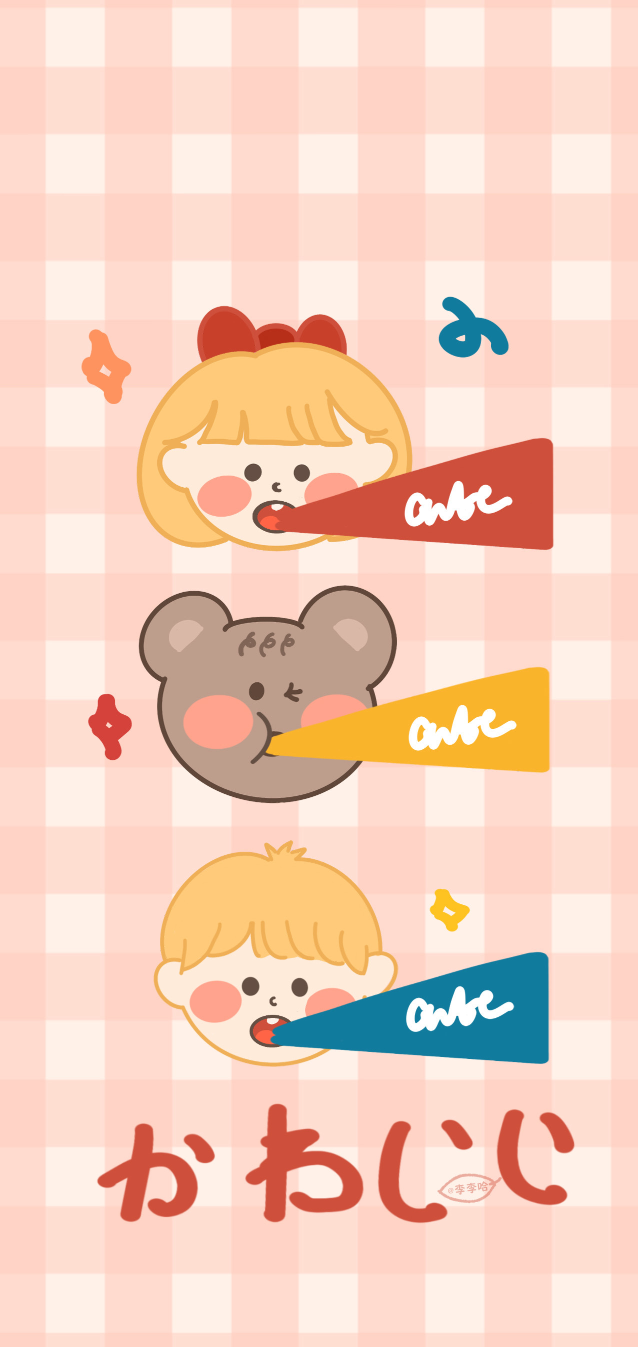 粉色可爱少女心情侣手绘手机壁纸