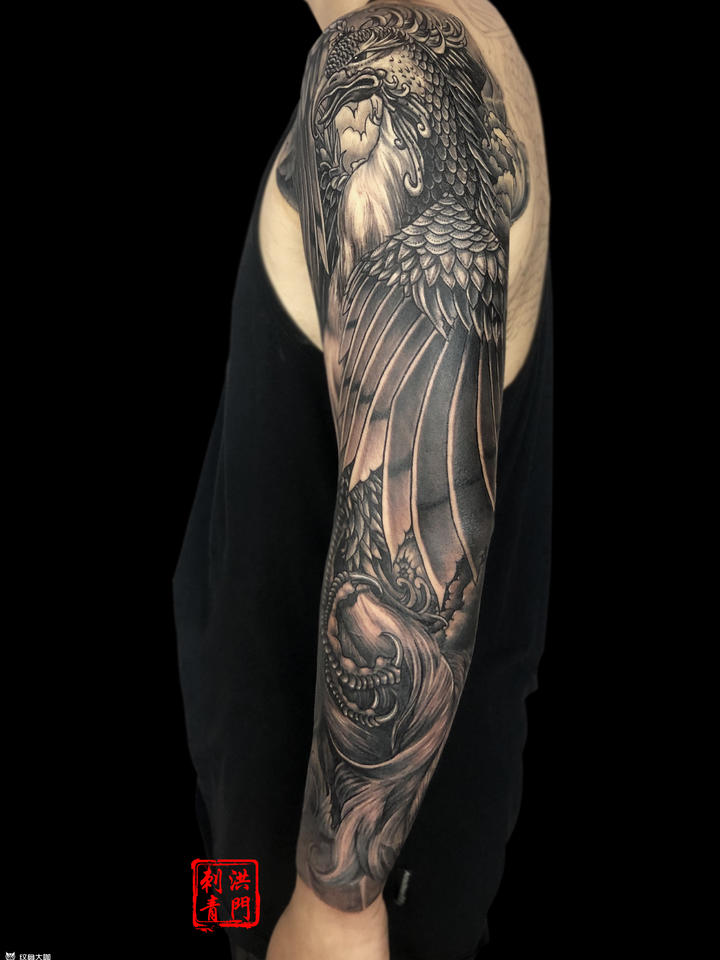 凤凰花臂_纹身图案手稿图片_大鹤的纹身作品集