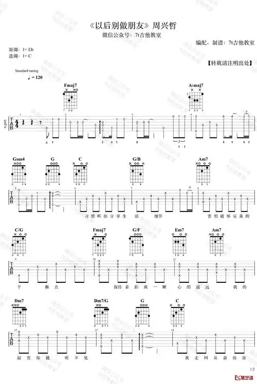 以后别做朋友吉他谱 c调附前奏_曲谱网编配_周兴哲1