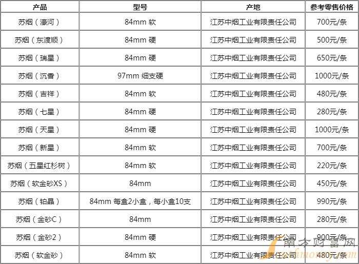 苏烟(东渡顺)9,苏烟(水韵)10,苏烟(多彩中支)本站提供的香烟价格数据
