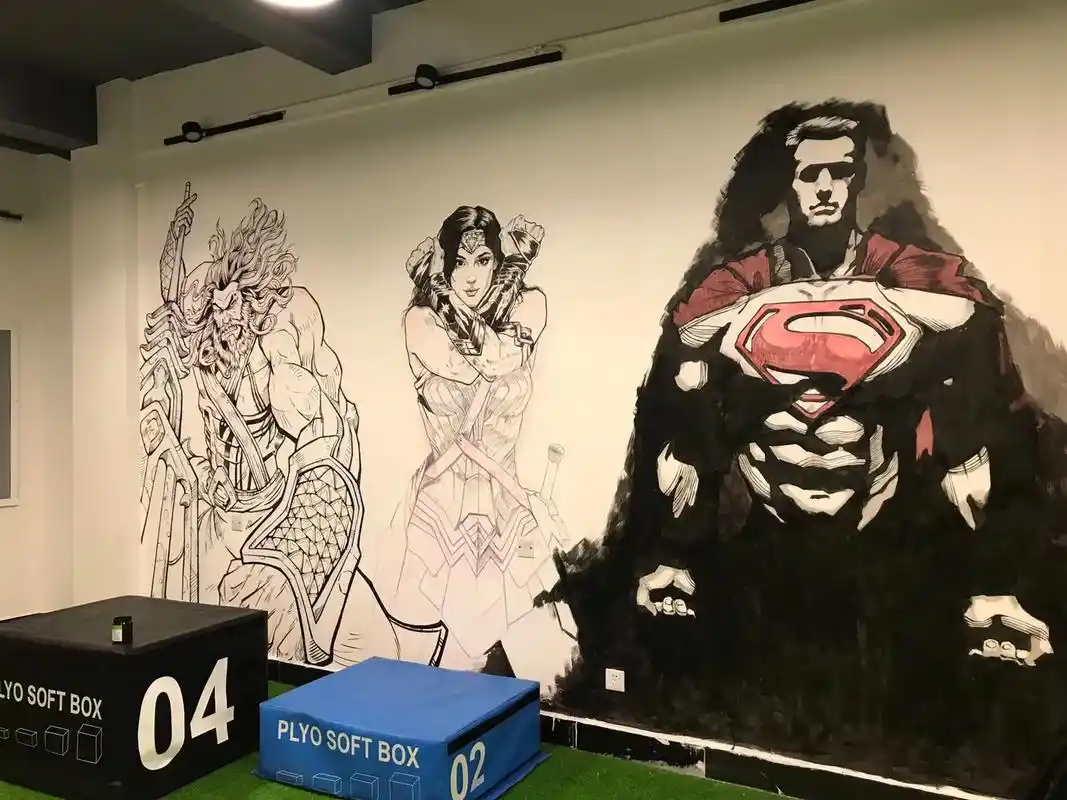 健身房墙绘室内#手绘墙 #墙绘艺术 #背景墙 - 抖音